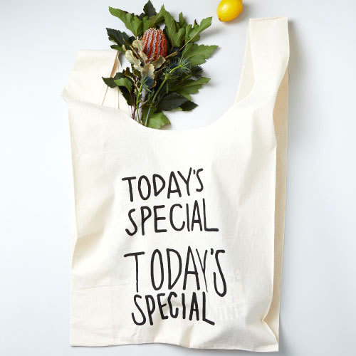 TODAY'S SPECIALは、おしゃれな食器や雑貨など、上質な暮らしを叶えてくれるアイテムがあれこれ見つかる素敵なショップ。手描き風のロゴがおしゃれな定番のマルシェバッグは、オリジナル商品の中でも特に人気を集めるアイテム。