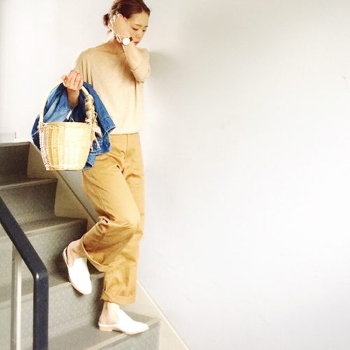 毎年ユニクロのリブTは大ヒット!その年の一番シンプルで使いやすい形を出してくれているので、合わせやすさはお墨付き。今年はデコルテがきれいに開いた広めのUネック。トレンドのハイウエストのボトムにもぴったり合いますよ。