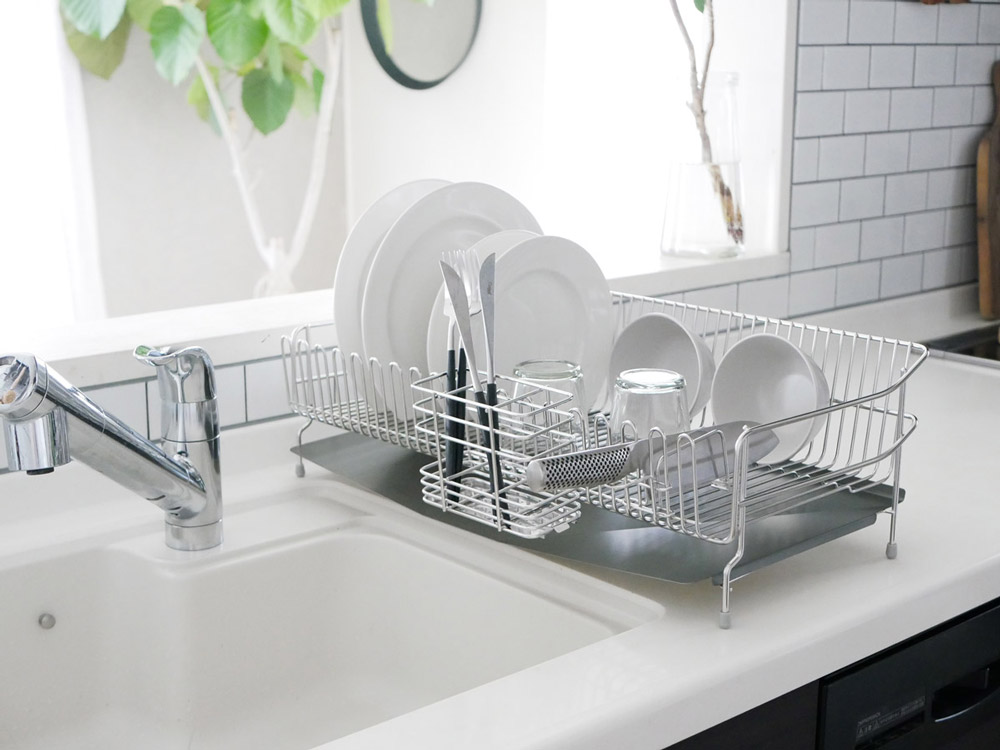 高品質ステンレスで細かい所まで気配りされた「UCHIFIT ステンレス水切りカゴ」。お椀を立てたり、水筒をかけたり、包丁も安全に置けたり…と自慢もできちゃう高機能の水切りカゴの登場です。