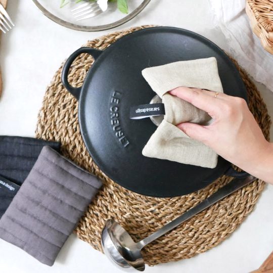 ナチュラルな風合いで食卓にぴったりのリネン素材で、指先に差し入れるだけで掴みやすい鍋つかみ。スクエア型でシックな色合いは、テーブルコーディネートやインテリアにも馴染むから普段使いからパーティまで、おしゃれに使えます。
