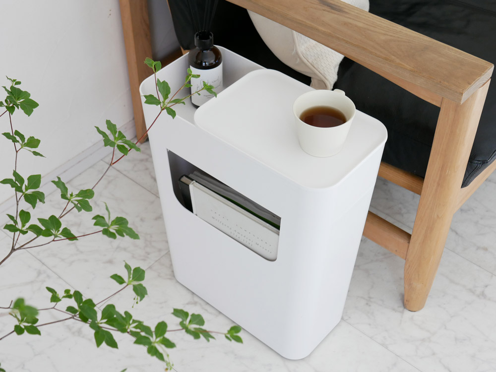 やわらかなフォルムとカラーで優しくインテリアに馴染むのに、ゴミ箱にも収納にもサイドテーブルにもなっちゃう、生活に馴染みすぎるアイテムなんです。