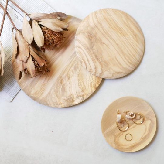 イタリアで育った平和と豊かさの象徴のオリーブの木で造られた丈夫で材質も硬く、木目の美しさに目が惹く「OLIVE WOOD ラウンド プレート」
