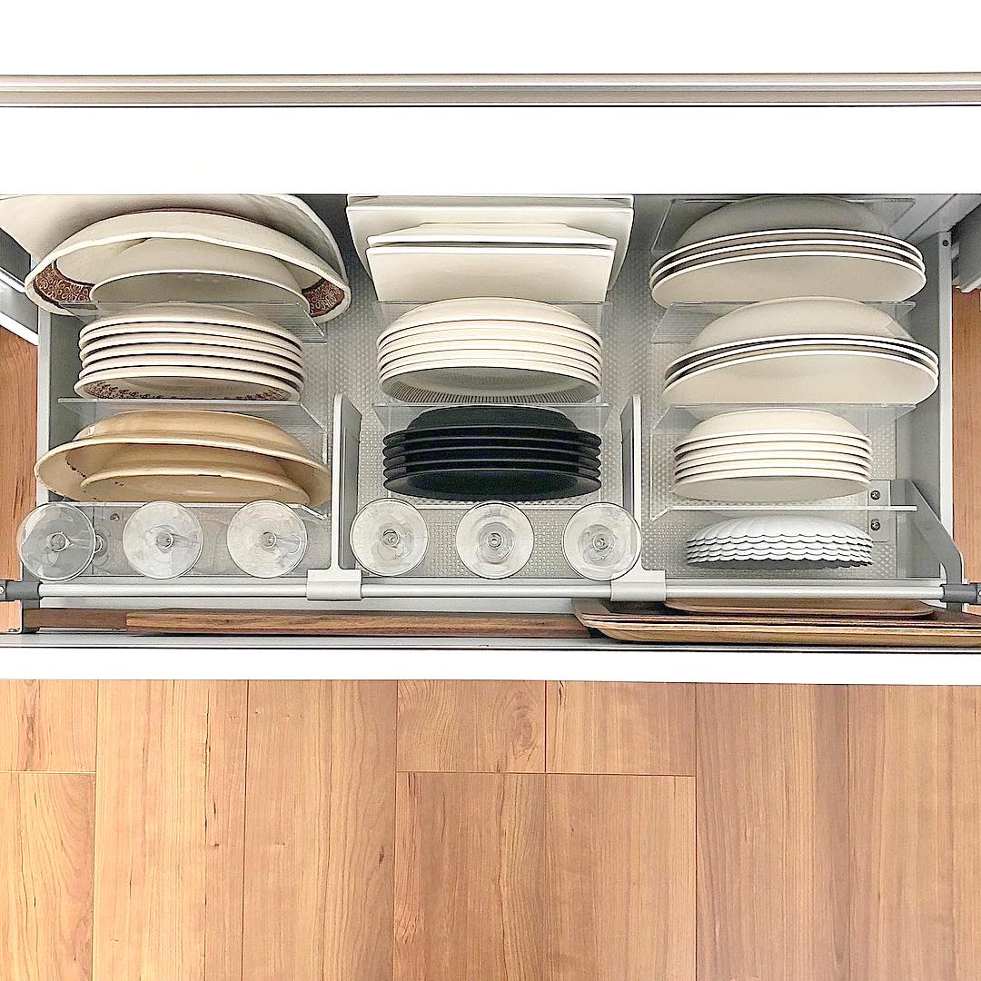 自分の身長よりも高いところにある吊戸棚は、片づけるのが少々難しい場所です。使い勝手が良い空間にするためには、どんな物を収納したいのかピックアップし、整理整頓について考えていくのがおすすめ。少し難しい場所ですが、しっかり考えることで使い勝手がよくなります。