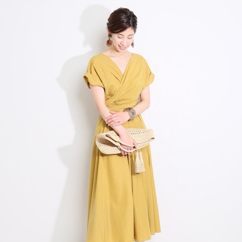 カシュクールワンピースは女性らしいスタイルを叶えたい時におすすめです。Vネックなのでデコルテの美しさもアピールできますよ。前を開けて着られるタイプなら、ロングガウンとしても活用できます。今季はおしゃれな色柄が豊富に登場しているのもポイント。