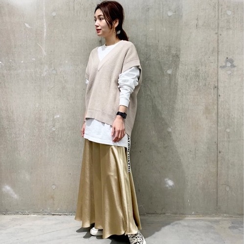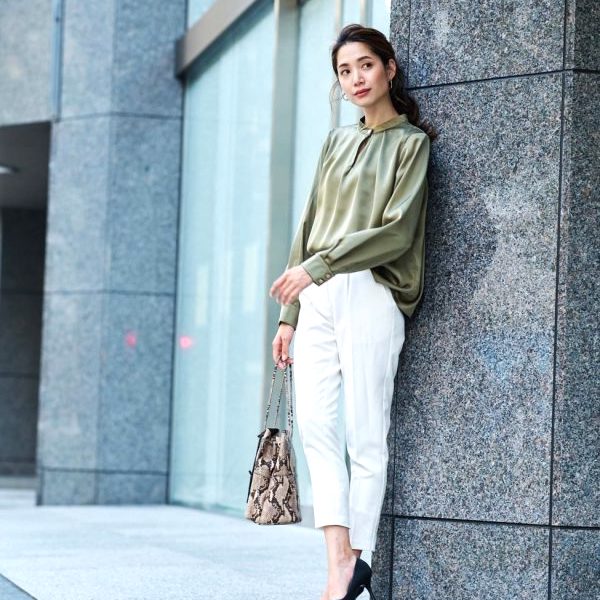 独特の光沢感と落ち感が魅力の「サテン」。秋の着こなしにトレンド感を取り入れられる一押しの素材です。 エレガントなツヤ感が大人の魅力を引き出すので、積極的に取り入れるのがおすすめ。