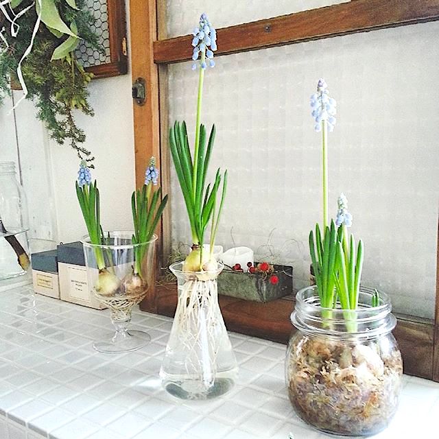 ぶどうの房のように小さな花をつけるムスカリ。さわやなブルーも印象的な花ですよね。春の到来を教えてくれるムスカリは、これからのシーズンのインテリアにぴったりのアイテム。そこで今回は、ムスカリをインテリアに取り入れるアイディアをご紹介します。