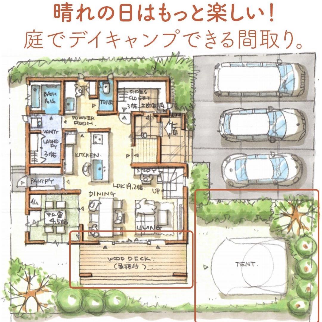 madree(マドリー)は、建築家さんの間取りを含むあなただけの家づくりマイホームプランをご提案しています。今回は「晴れの日はもっと楽しい!庭でデイキャンプできる間取り。」をご紹介します。