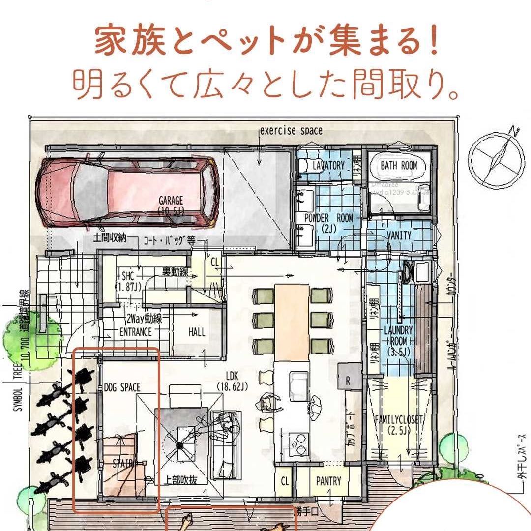 madree(マドリー)は、建築家さんの間取りを含むあなただけの家づくりマイホームプランをご提案しています。今回は「家族とペットが集まる!明るくて広々とした間取り。」をご紹介します。