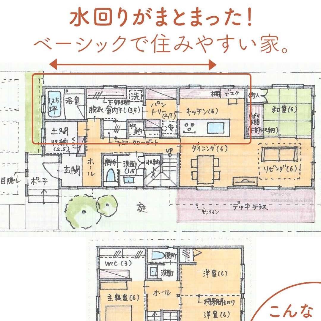 madree(マドリー)は、建築家さんの間取りを含むあなただけの家づくりマイホームプランをご提案しています。今回は「水回りがまとまった!ベーシックで住みやすい家。」をご紹介します。