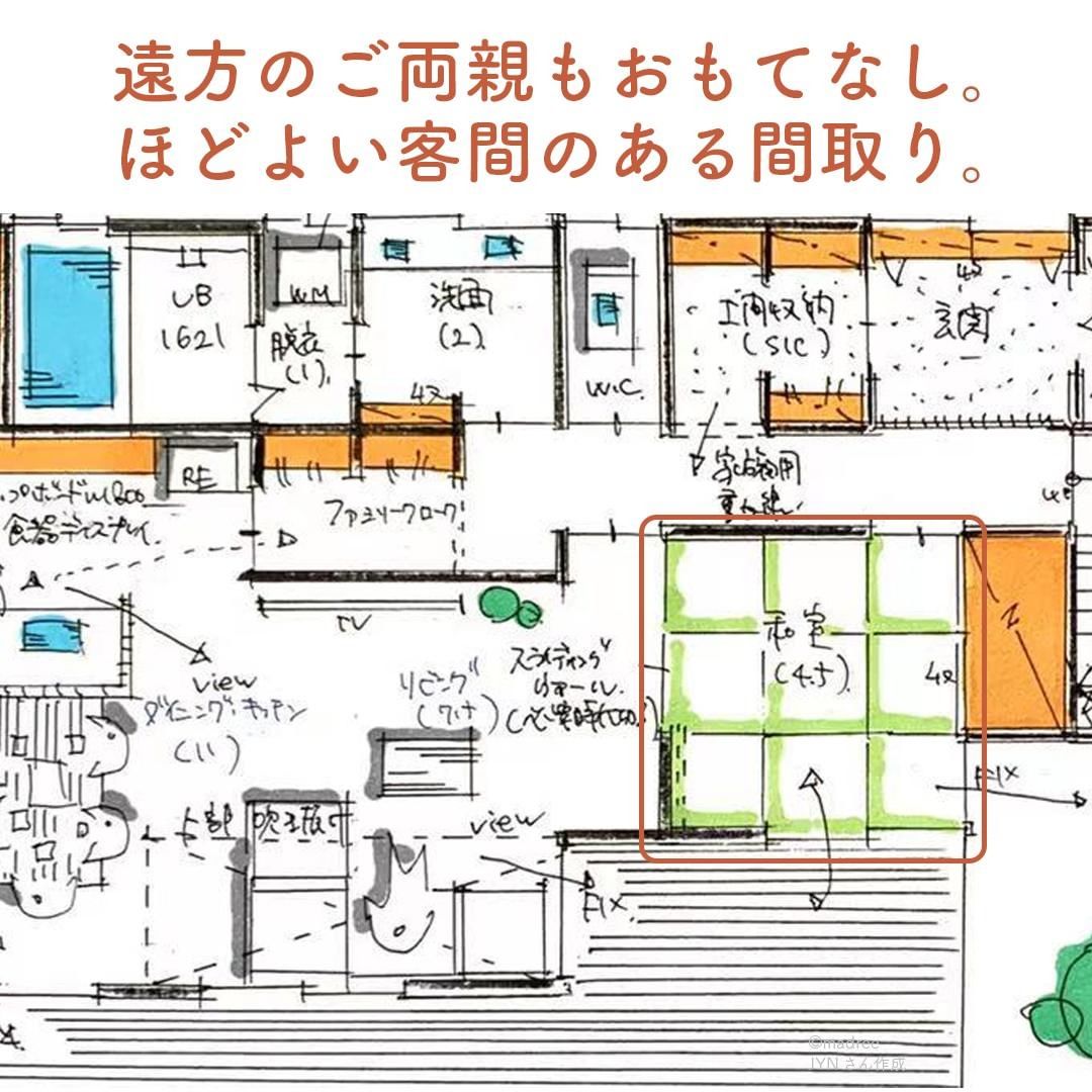 madree(マドリー)は、建築家さんの間取りを含むあなただけの家づくりマイホームプランをご提案しています。今回は「遠方のご両親もおもてなし。ほどよい客間のある間取り。」をご紹介します。