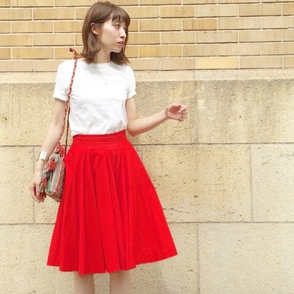 パキッとした色味で、メリハリのあるコーディネートを作ってくれる赤。甘さやかわいらしさが少なく、どんな方でもチャレンジしやすいグリーン。 着映えを狙うなら、どっちのカラースカートを選びますか? 今回は、それぞれのカラースカートを使ったおしゃれコーデをいくつかまとめてみました。ぜひチェックして参考にしてみてくださいね☆