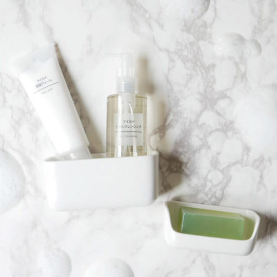 バスタイムに欠かせない石鹸や洗顔などを浴室の壁面に浮かせて収納できる「小物入れ」と「石鹸置き」の登場です。