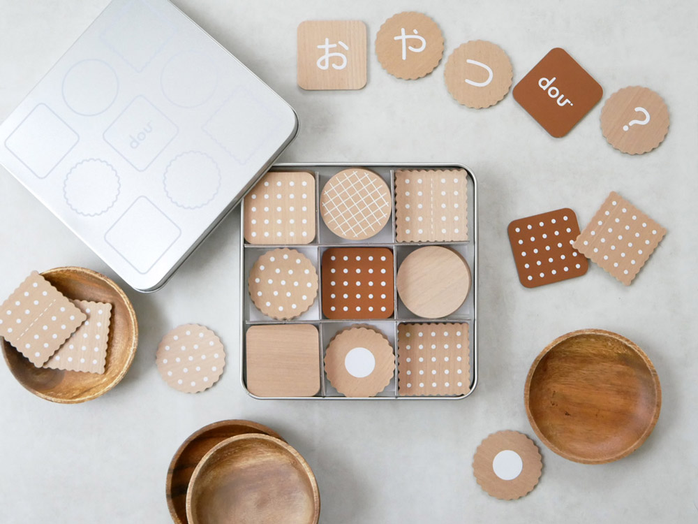ブリキ缶のパッケージがキュートで、まるで本物のビスケットのよう!楽しくひらがな遊びが出来る木のおもちゃです。 2019年夏、新しく生まれたおもちゃブランドdou?(ドウ)の、おままごとをしながら「あいうえお」を楽しく学べるひらがなビスケット。
