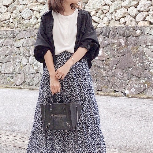 GUで今季大人気になっているフラワープリントフレアロングスカート。甘くなりがちな花柄スカートですが、ロング丈なので大人っぽく取り入れることができるんですよ。3色展開で、価格も1,990円(税抜)とプチプラなのが魅力的です。今回は、そんなフラワープリントフレアロングスカートの着回し術を色別にご紹介します。