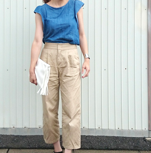 GUのなかでも人気を誇るワッフルTからノースリーブタイプが登場しています。その名も“ワッフルスリーブレスT”。カラーはオフホワイト、ブラック、ダークブラウン、ブルーの4色展開です。価格も990円(税抜き)、とかなりプチプラ。そこで今回は、大注目のワッフルスリーブレスTの着こなし術をご紹介します。