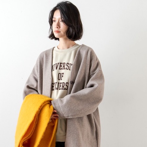 冬の着こなしに欠かせないメルトンコート。シンプルなメルトンコートを1着持っておくと、カジュアルにもきれいめにも大活躍しますよ。大人女性のトレンドアイテムがプチプラで手に入る「Pierrot」からメルトンノーカラーコートをご紹介。