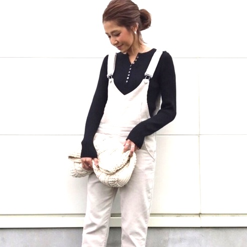 引き続きトレンドのサロペット。冬はニットやアウターと合わせたコーデが新鮮でさらに可愛く見えます。