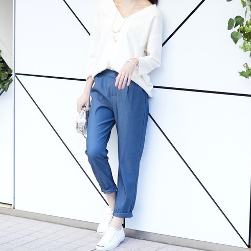 季節を問わず着られるデニムコーデですが、春は甘めなブラウスを合わせて、ほんのりかわいらしい着こなしに仕上げるのがおすすめです。カジュアルなデニムパンツを使うので、ガーリーになりすぎず、大人女子でも着こなしやすいんですよ。今回は、今の時期真似したい甘さを足したデニムコーデをまとめてご紹介します。