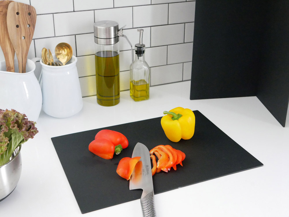 刃あたりが良く、薄くて軽いのに倍に広がる抗菌「カッティングマット」。木製まな板と樹脂製まな板の両方の困りごとを解決する、渾身の1枚ができあがりました。
