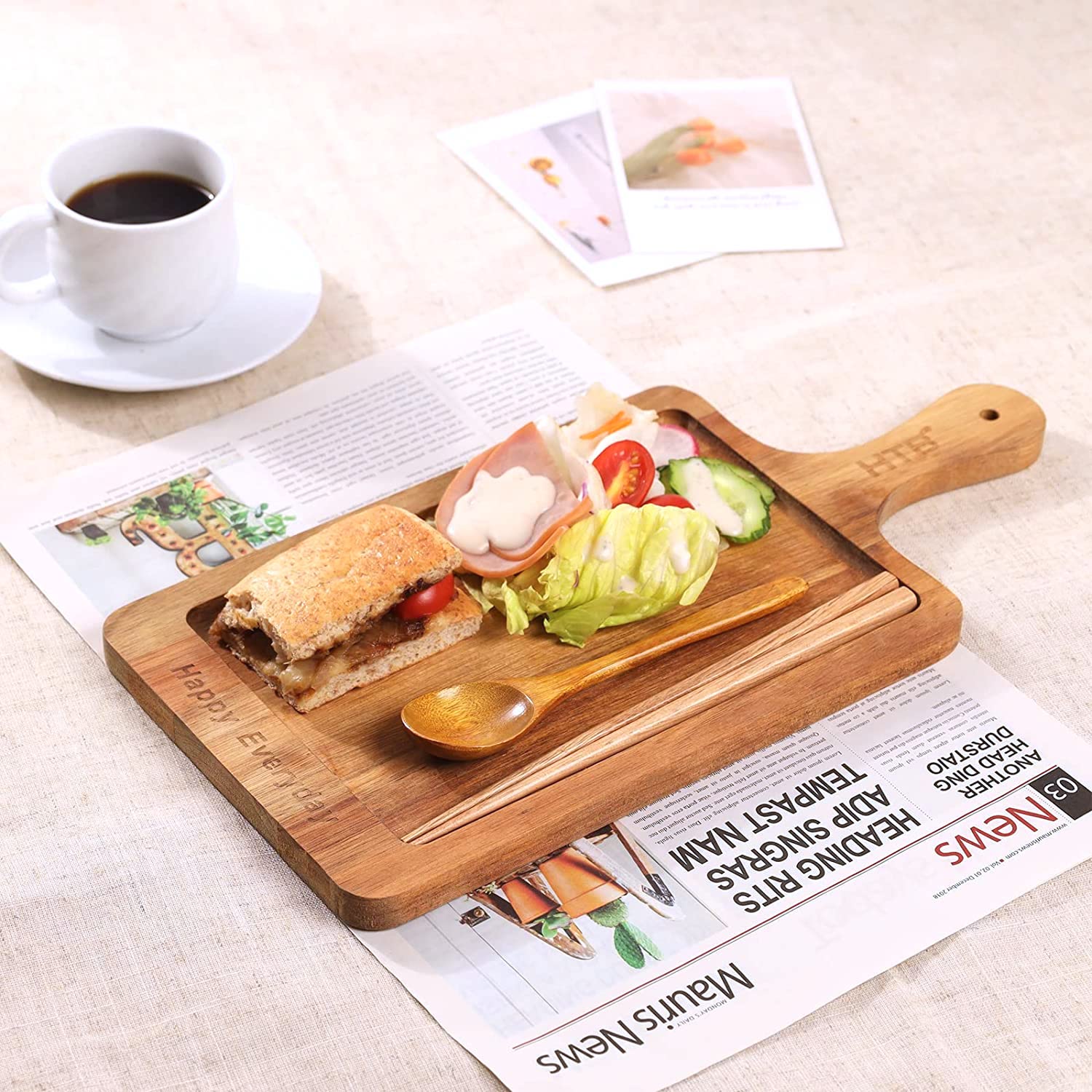 取っ手付きのスカンジナビスクヘムスロイドのサービングボードがうちにやってきました。他にも木製のカッティングボードはいくつか持っているのですが、 最近はもっぱら デザインがきれいで見栄えがする、こちらのオード-ブルトレーを使っています。