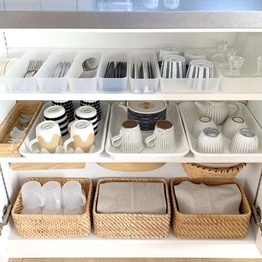 キッチンの使い勝手を左右するカップボード。必要なものがすぐ見つかり、すぐ手に取れるようにしまっておくことが重要なポイントになります。スッキリ整う整理整頓の方法や、使いやすいグッズも合わせてチェックしていきます。