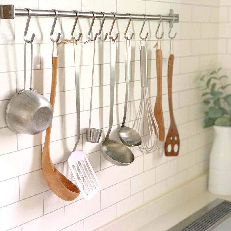 近年一般的な直置き収納から、吊り下げ収納が定番になりつつありますよね。今回は、キッチン周辺の吊り下げ収納アイデアを紹介させていただきます。どんな場所に、どのように吊り下げ収納すればいいのか悩んでいるという方は、ぜひ参考にしてくださいね。