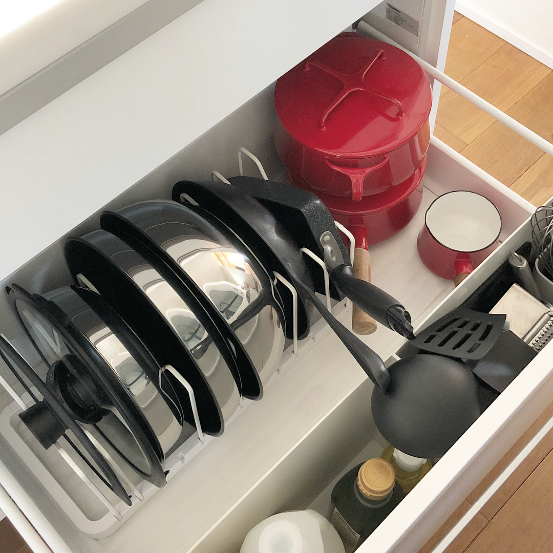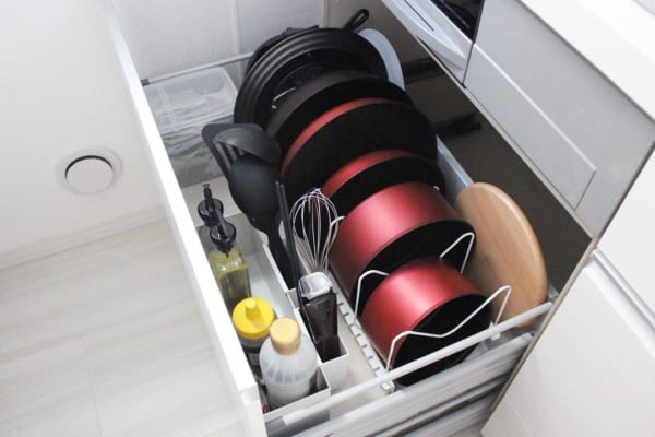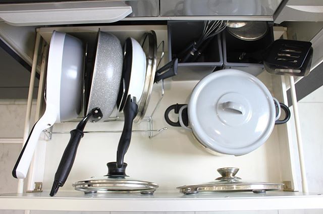 キッチンスペースの中で収納スペースを取ってしまうフライパン。フライパンを始め日常的に使用頻度が高い調理器具は、皆さんどのように収納されていますか? 今回は、見た目もスッキリと使いやすい収納術をクローズアップ。調理器具を効率よく収納しているアイデアをご紹介させていただきます。