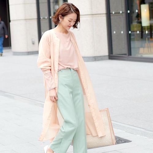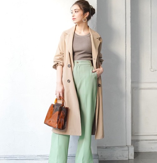 この春注目のカラーになっているのが、ミントカラーやライトグリーンなどの淡い緑色です。 新緑をイメージさせるようなカラーは、春コーデを明るくフレッシュな印象にしてくれます。 今回は、大人女子におすすめしたいライトグリーンパンツを取り入れたコーディネートをご紹介します。