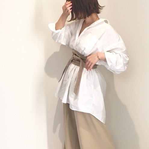 今春は「ヌキ襟」アイテムが話題に!オーバーサイズのシャツで女性らしいラインを簡単に出せるアイテムなので、1つはGETしておきたいですね。そんなオーバーシャツを使った今年らしいコーディネートをご紹介します。