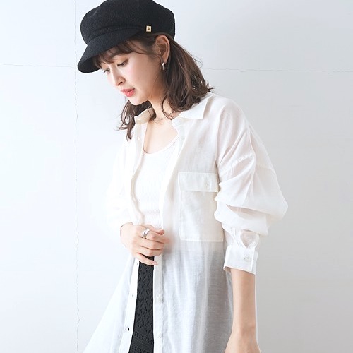 《白編》シアーシャツのコーデ特集。ロングとショート丈のおしゃれな着こなし術