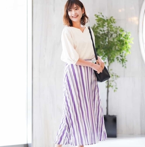 今年人気の紫。薄紫から濃い紫まで様々ですが、どれもコーデを印象的なものにしてくれますよ。いつものコーデにも紫スカートを投入することで、コーデがパッと華やかになるんです。今年の秋は紫スカートを取り入れて、ぜひおしゃれ度を引き上げましょう☆