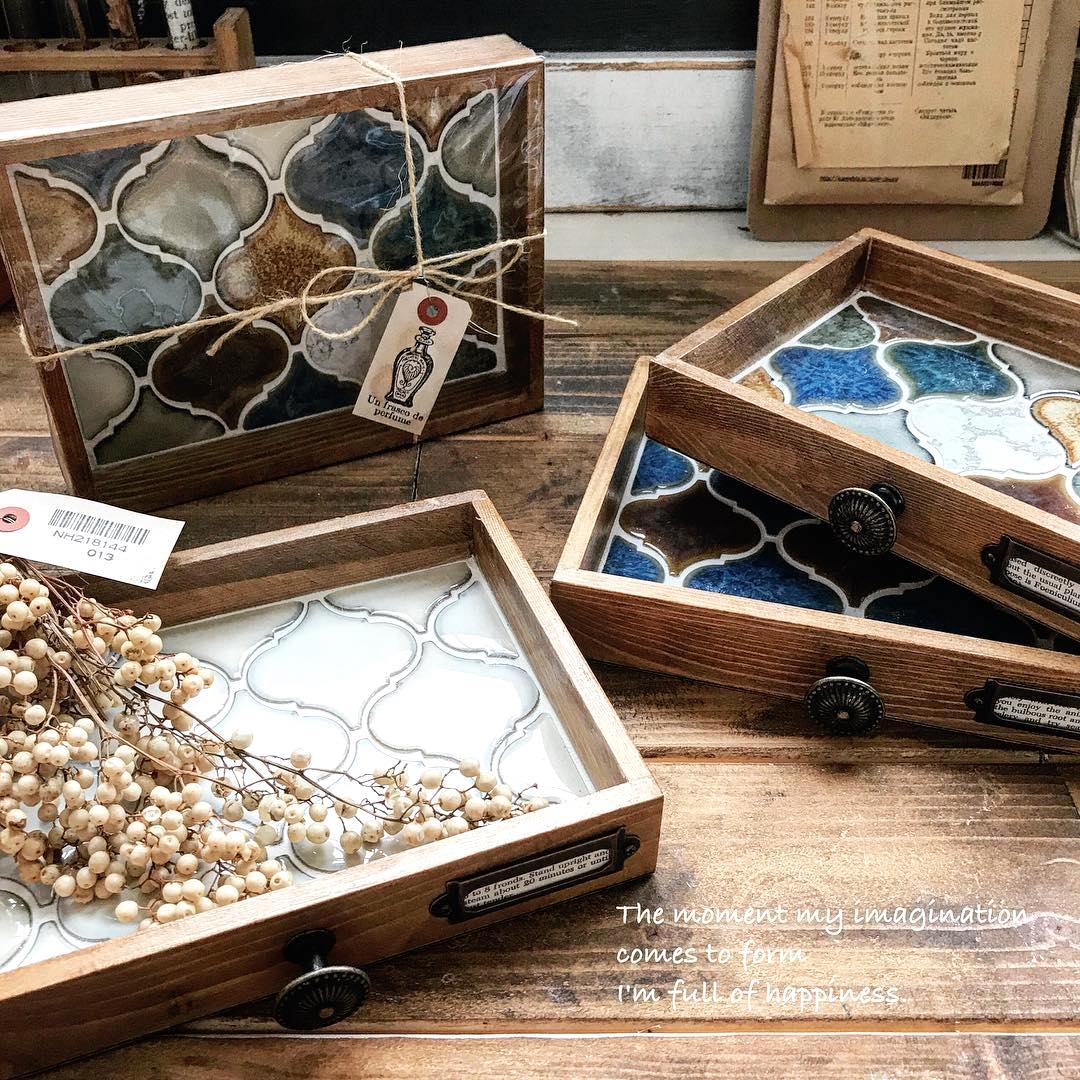 色も形も様々なタイル!水に強い素材なので、特に水周りには最適です。小さなスペースでも、アクセントになって雰囲気が変えられますよ。もちろん、自分好みにDIYも可能!お手軽な小物からタイルを取り入れてみませんか?
