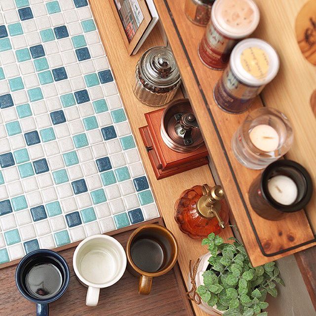 小さなモザイクタイルを使ったインテリアは、どことなくレトロでかわいらしい雰囲気がします。最近では裏面がシールになっていて素人でも簡単に使うことができるモザイクタイルも多く、DIYで取り入れているという方も多いですよね。そこで今回は実際にモザイクタイルを使っておしゃれなインテリアを作り上げている例をご紹介します。