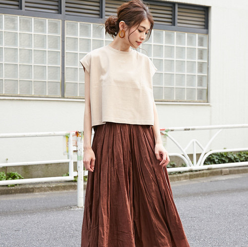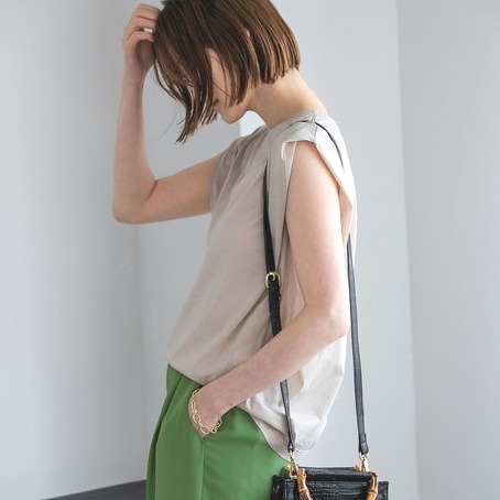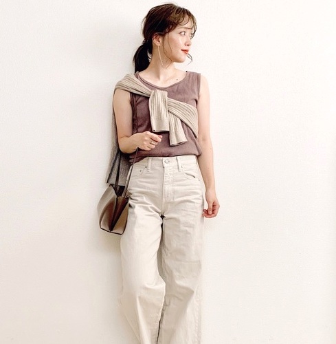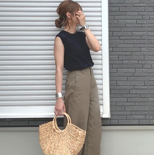 暑さも本番!ノースリーブトップスで涼しく細見えを狙おう!