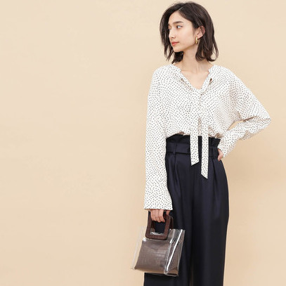 胸元にアクセントのあるボウタイブラウスはボウタイのおかげですっきりとした印象を作ってくれて、着やせ効果もあります♪とろみ感のあるブラウスが多いのでさりげなく女っぷりも上がります。