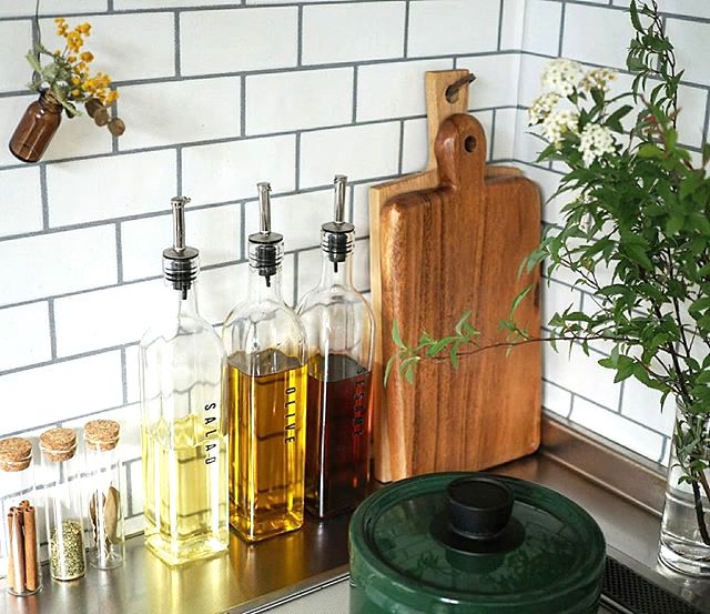 オイルボトルは、オイル類を詰め替えるだけで統一感がアップして、キッチンがお洒落に見えるアイテムですよね。今回は、オイルボトルにラベルをプラスしたりオイル以外のスパイスを詰め替えているアイデアまで、みなさんの活用法をまとめてご紹介いたします。
