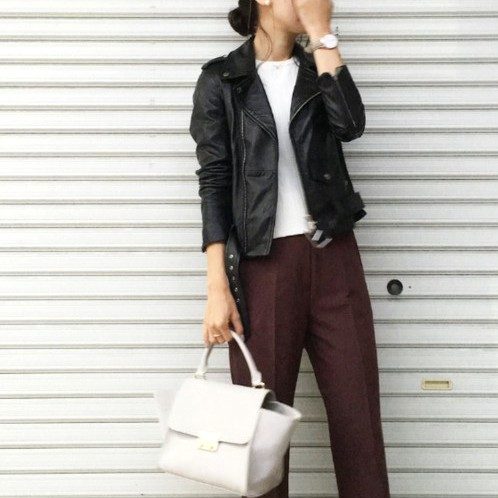 トレンドのハイウエストのボトムと、定番人気のライダースを使ってスタイル良く見えるコーデを集めてみました。ハイウエストのパンツやスカートに、トップスをインして、ライダースを羽織るだけ。簡単なコーデなのに脚長効果が抜群です。