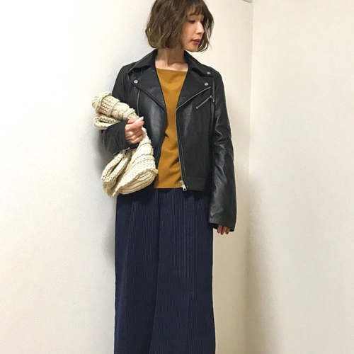 寒くなってくると、せっかくのコーデもコートを上に羽織ってしまっては見えなくなってしまいますよね。そんな時はショートコートを使ってボトムスを活かしたコーデをしましょう♪寒さに対抗するならダウンジャケットがオススメです。