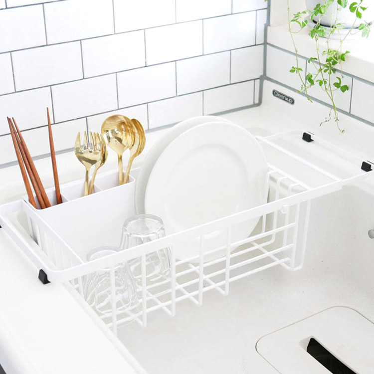 片側伸縮でシンクの縁に掛けるだけの水切りラック。直接シンクに水が流れ衛生的でお手入れも楽ちん♪フラット構造でお皿も立てやすくコップも置きやすい、新発想の伸縮水切りワイヤーバスケットです。