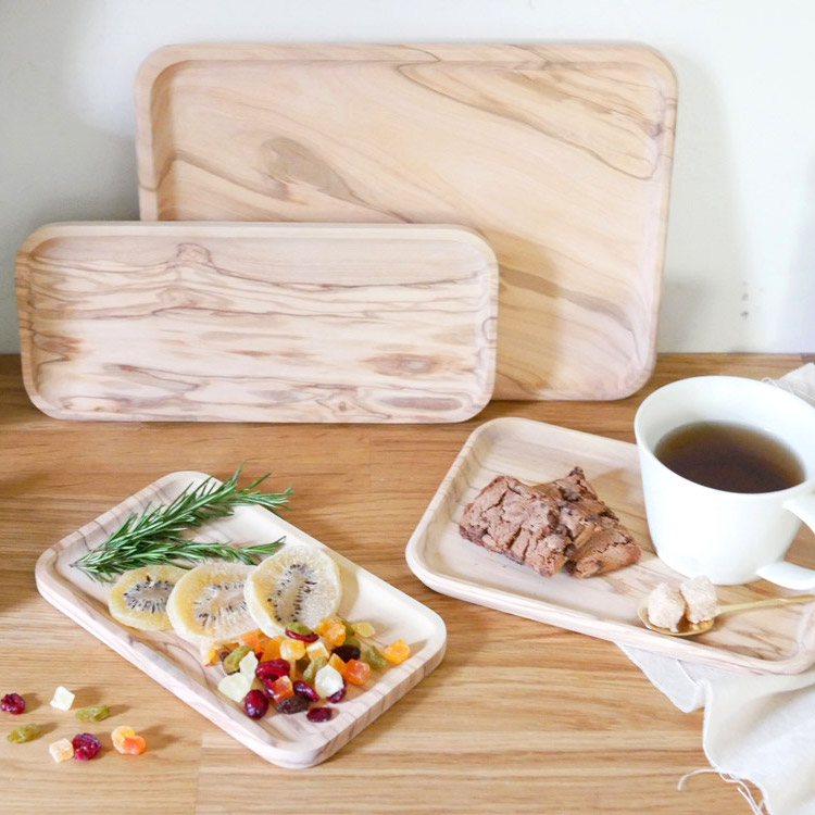 使う度に風合いが増す、イタリアで育ったオリーブの木で造られた丈夫で材質も硬く、木目の美しさに目が惹く「OLIVE WOOD プレイス トレー」