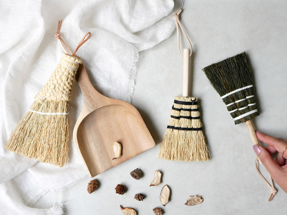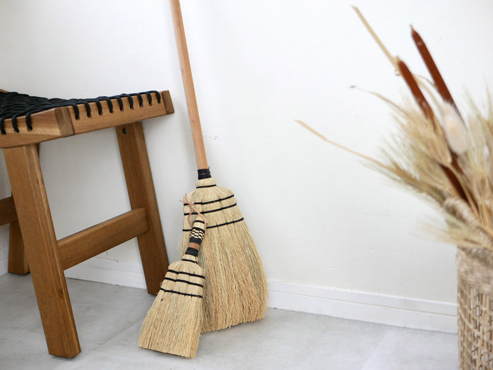 ひとつひとつ手作りのあたたかみのある道具「ほうき」。サトウモロコシで作られたほうきは軽くて持ちやすいのでお掃除もらくらく♪使わない時も飾っておきたくなるかわいさです。